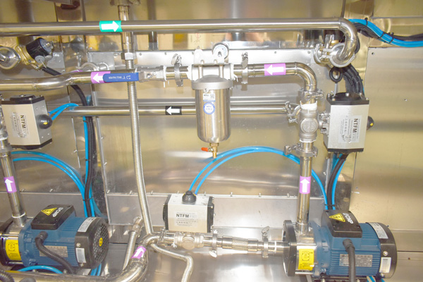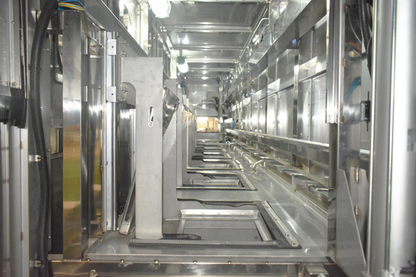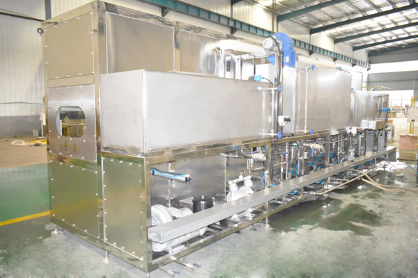該設(shè)備有上料工位、 超聲波清洗工位× 4、 酒精漂洗工位、 風(fēng)刀切液工位、下料工位、 廢液儲(chǔ)存槽× 2、溶液預(yù)加熱槽× 2、 桁架機(jī)械手、清洗工裝、 拋動(dòng)系統(tǒng)、 隔爆溫控水浴加熱系統(tǒng)、 PLC+觸摸屏控制系統(tǒng)、 管路系統(tǒng)及智能電器控制系統(tǒng)設(shè)備等組成。該設(shè)備清洗效果好、提高了工件的清潔度。該機(jī)結(jié)構(gòu)設(shè)計(jì)及工藝安排合理、自動(dòng)化程度高、清洗精度高,有效解決了此類(lèi)工件的清洗難題。